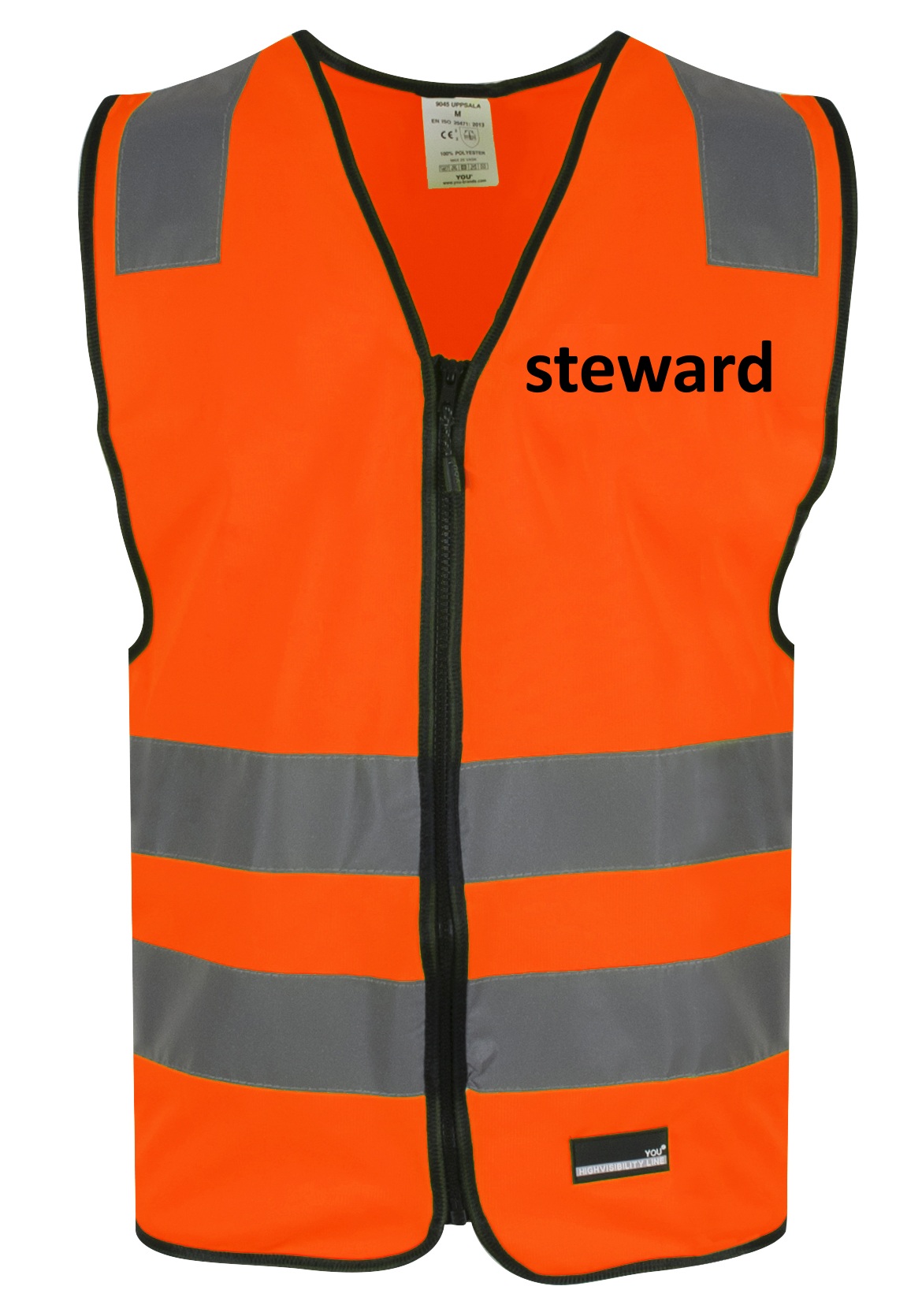 Orange Refleksvest med Lynlås – Med STEWARD tryk