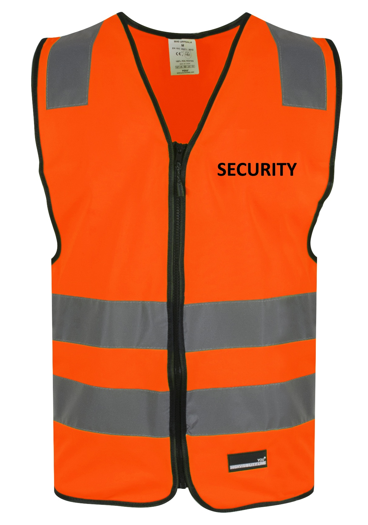 Orange Refleksvest med Lynlås – Med SECURITY tryk