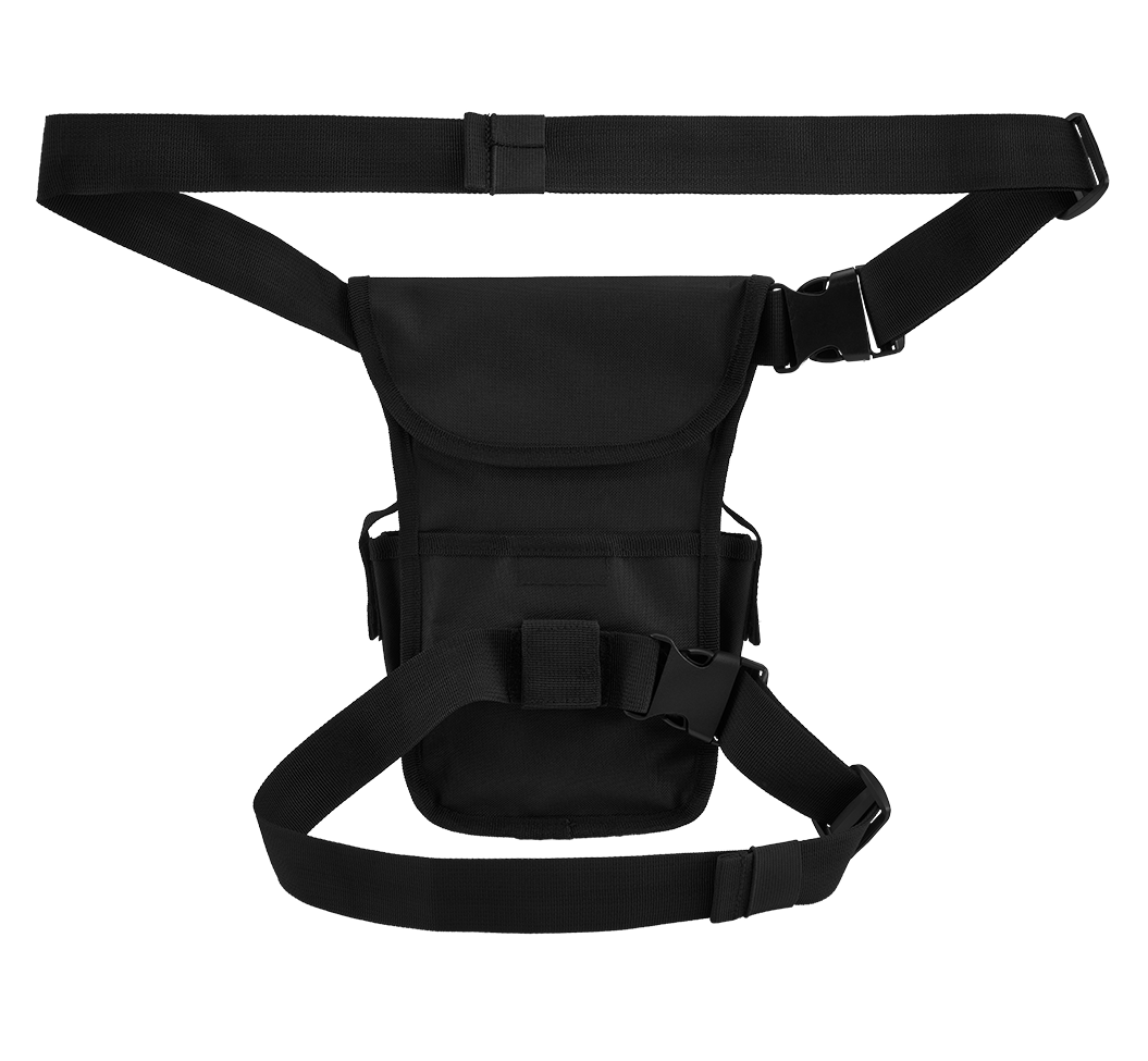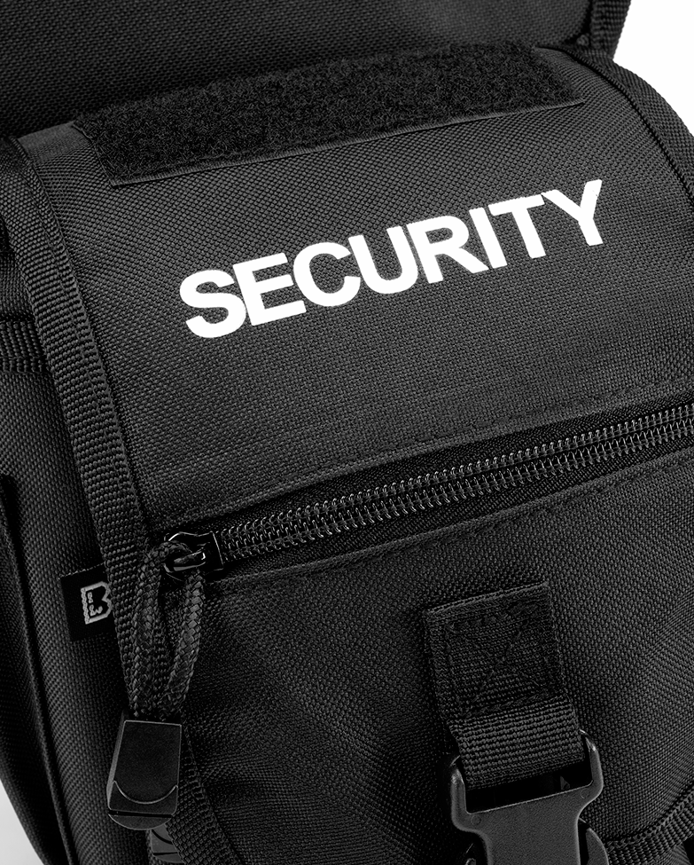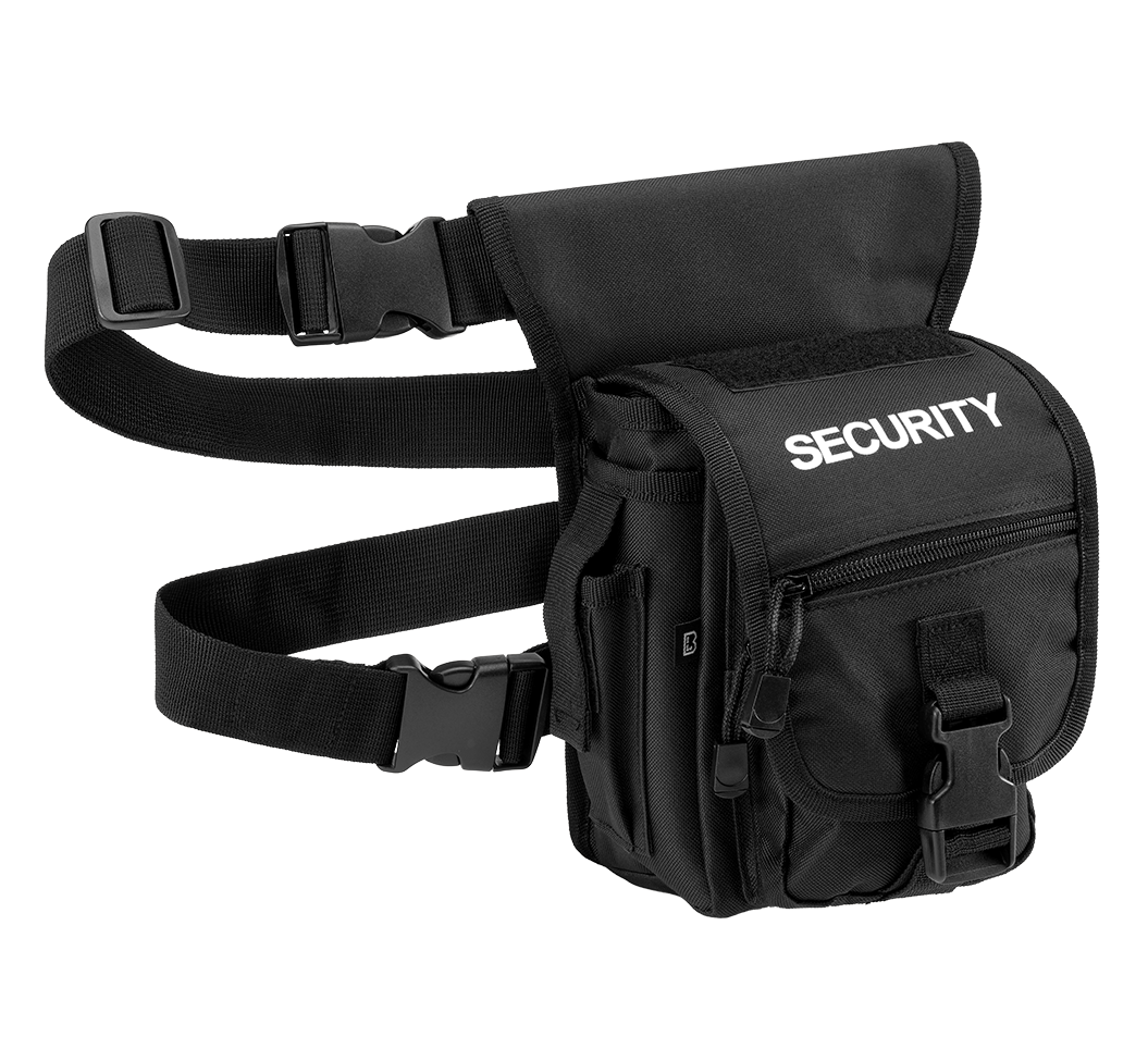 Praktisk Security lårtaske med aftagelig rem, som monteres i bæltet. Flere forskellige rum med bla. velcro og lynlås åbning gør den velegnet til eks. førsehjælps udstyr eller til opgaver der kræver ekstra grej.
